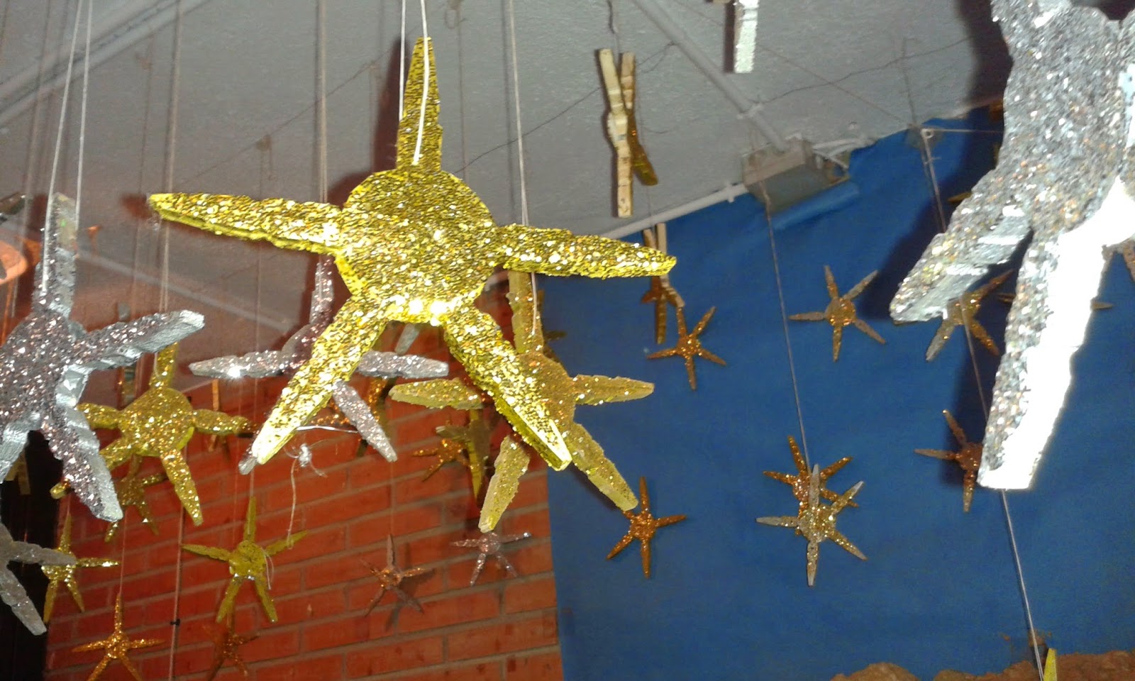El material principal que se ha utilizado esta vez para la creación de las figuritas, casas, castillo,... ha sido las pinzas de ropa, para ello y tirando de imaginación, cada clase y cada niño ha elaborado su parte de este fantástico Belén.