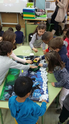 Los alumnos de 5º de Primaria están preparando un proyecto para la Comunidad de Madrid que se llama "Acepta el reto del Planeta" y para ello están elaborando un puzzle gigante...